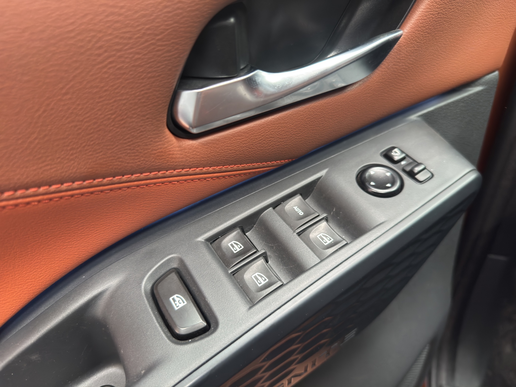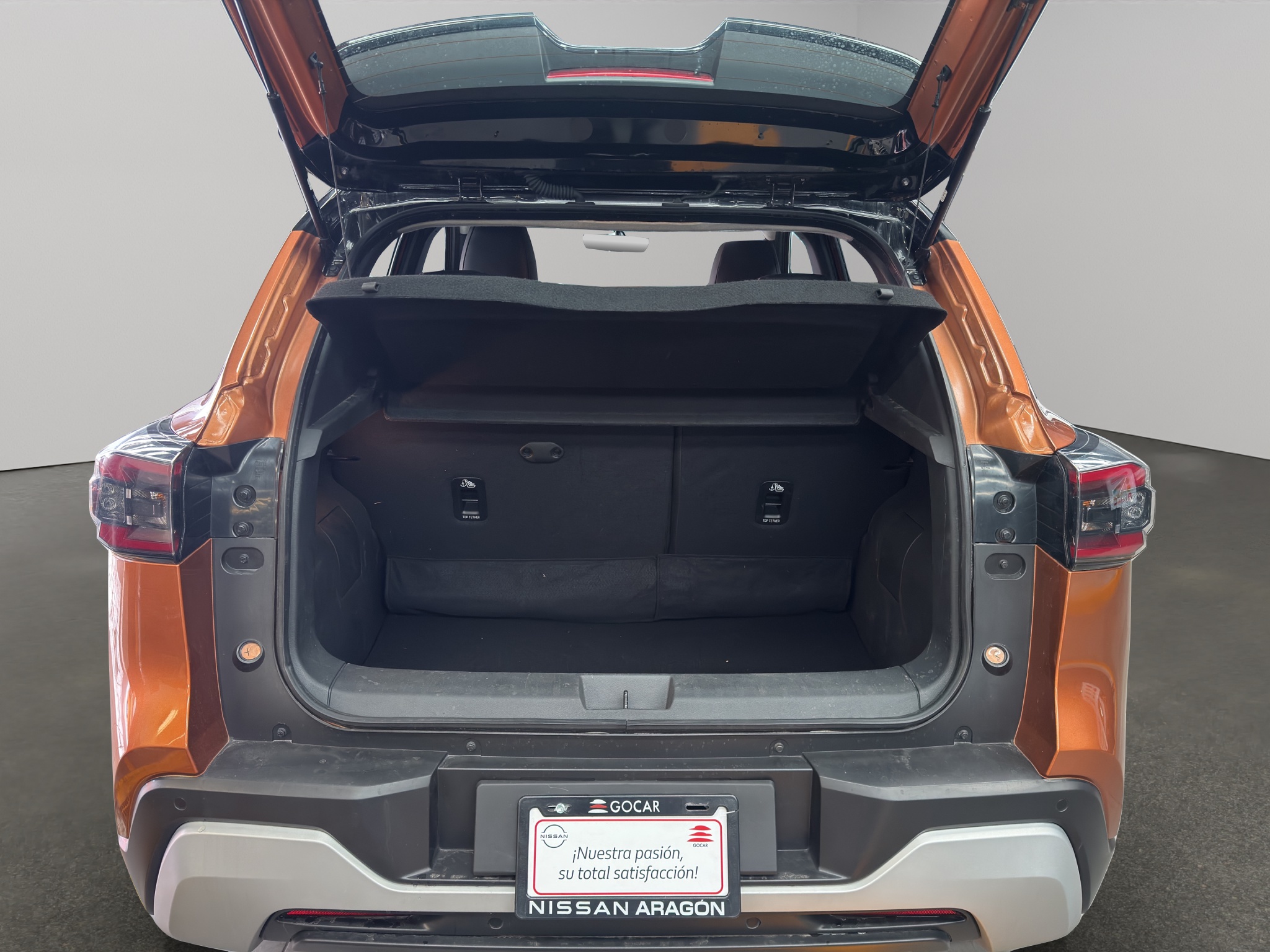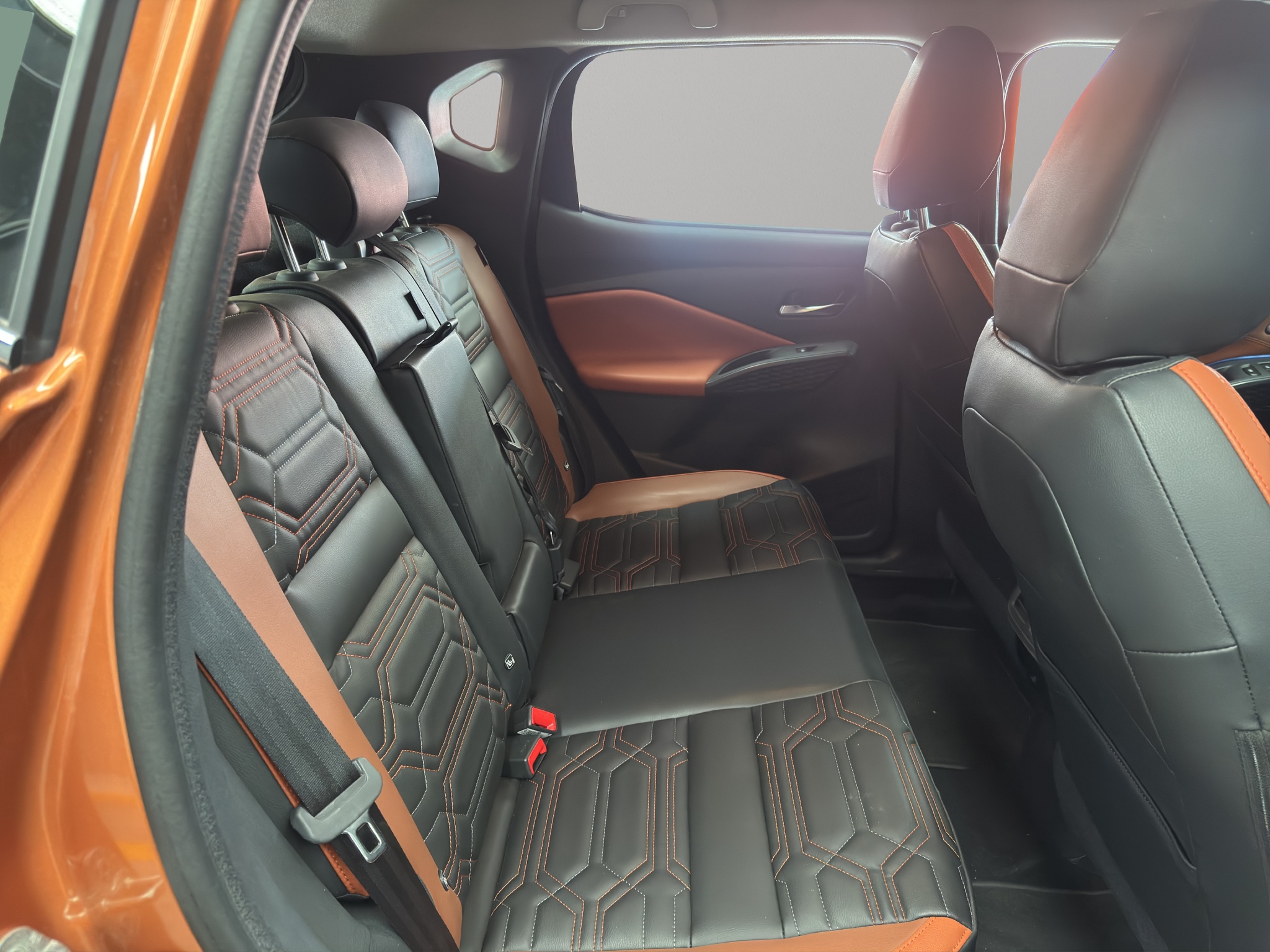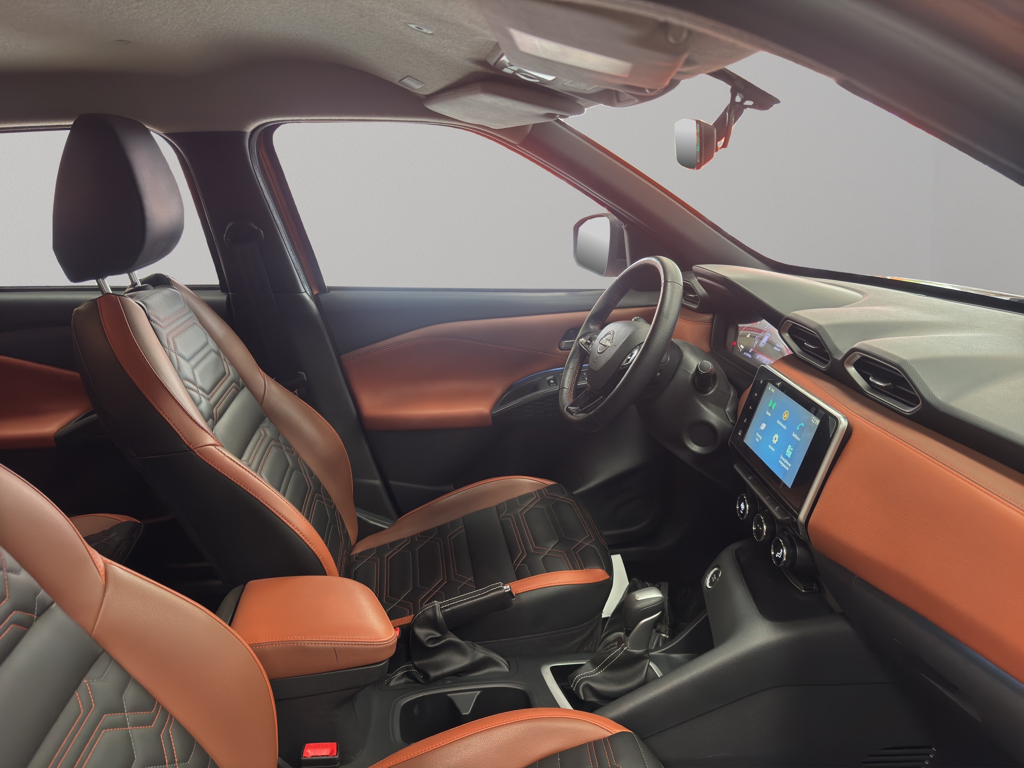 Asientos tapizados en piel sintética (color negro con detalles en naranja/café según disponibilidad).